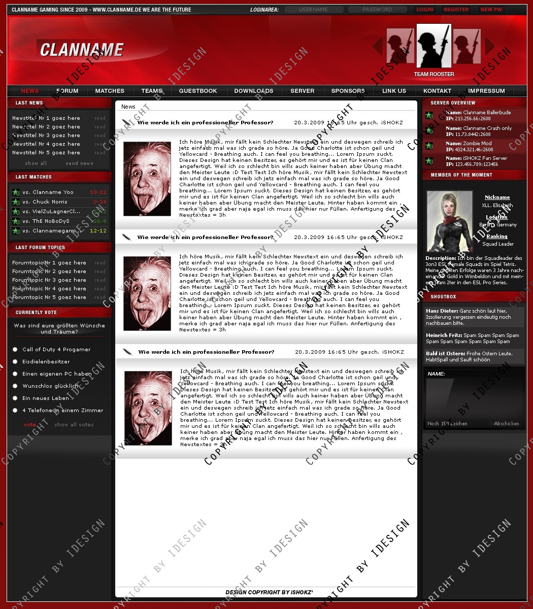 Dies ist ein professionelles Clandesign. Eine übersichtliche und geordnete psd Datei mit allen vorhandenen Ebenen ist vorhanden. Bei weiteren Fragen oder Support wenden sie sich per E-mail an "[email protected]" Dieses Design gibt es auch in Blau, schaut bei meinen Produkten.