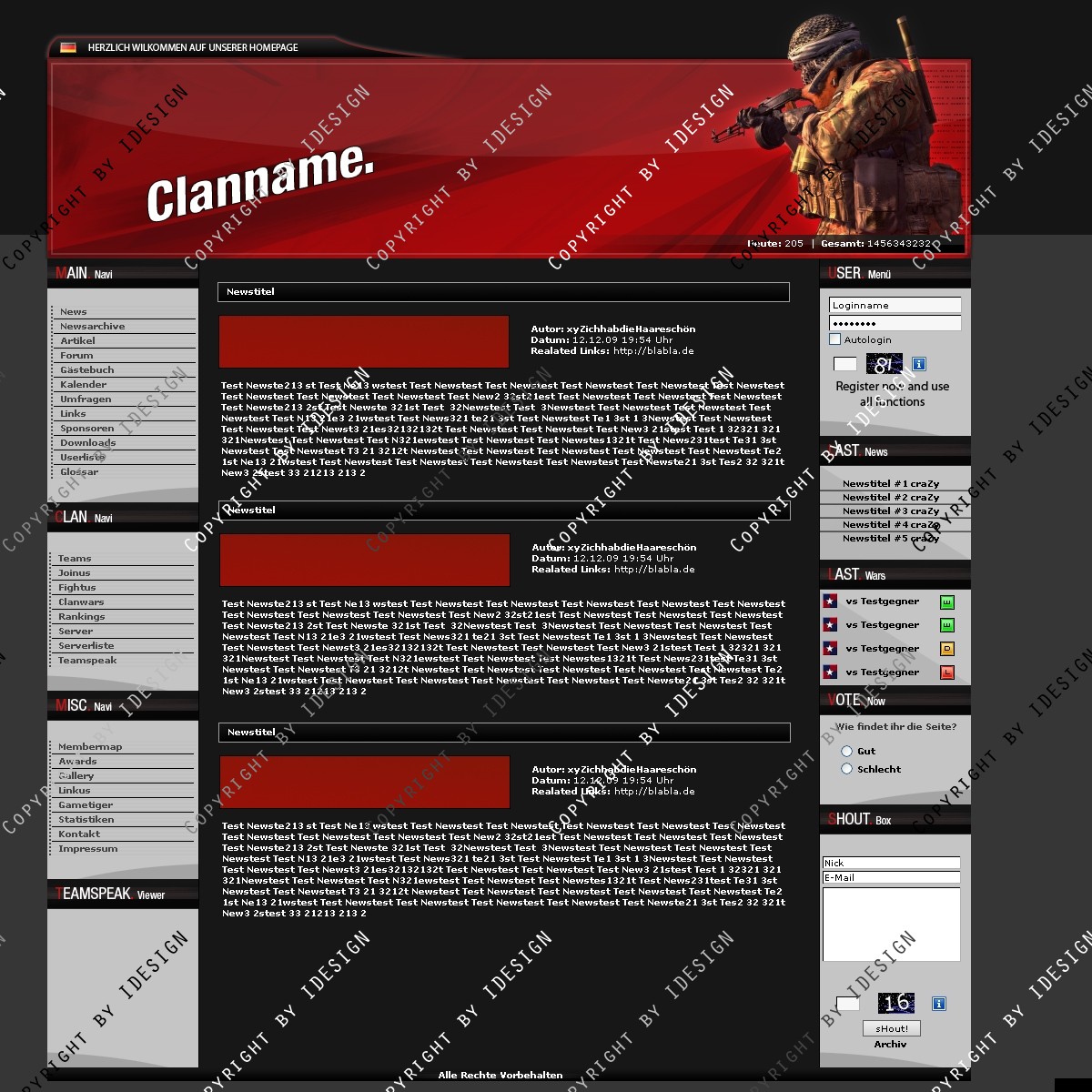 In der psd sind Call of Duty 4, Crysis, Battlefield und Call of Duty 1 Figuren für den Header.