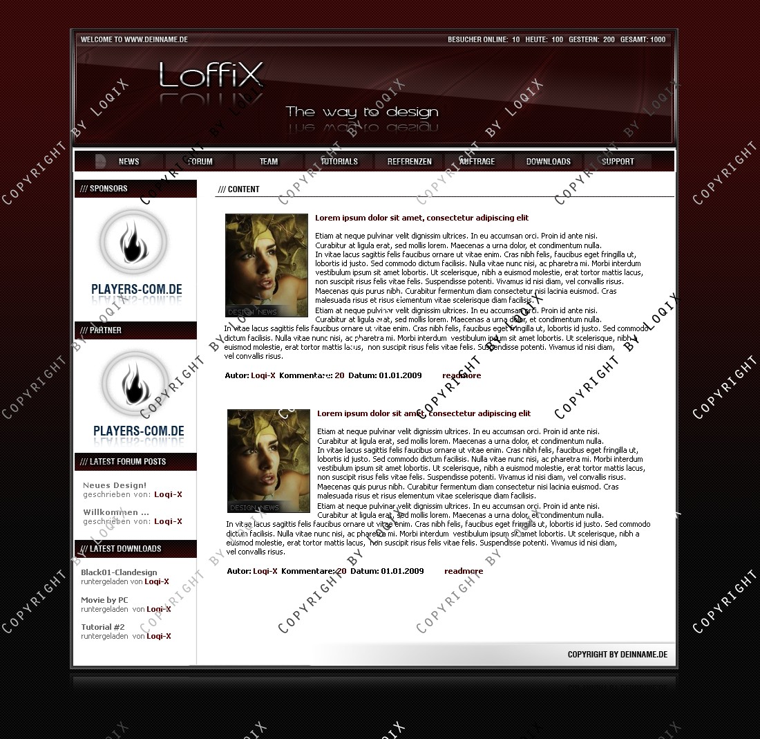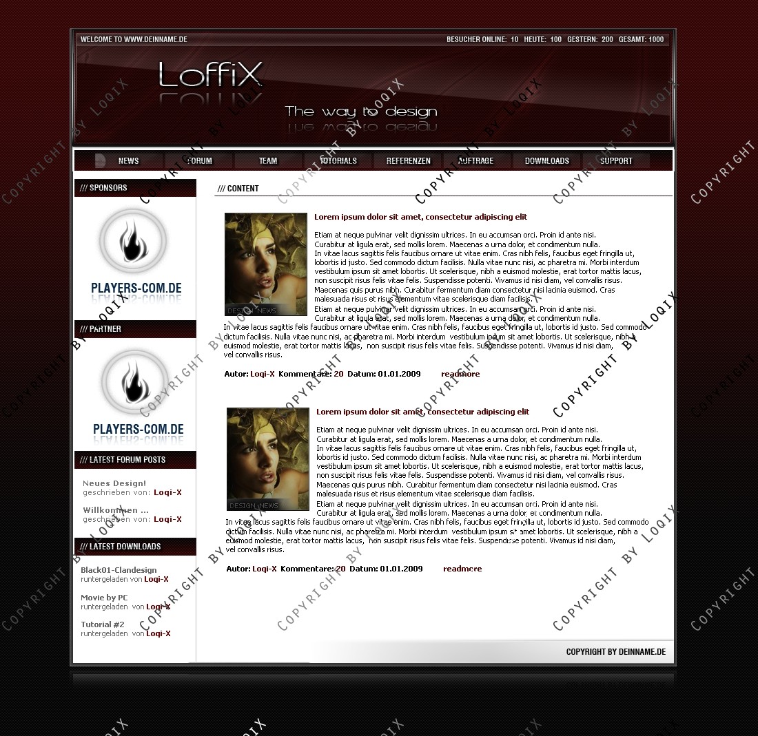 Portfolio-Design in dunkel roter Farbe. Ideal für Designer die ihre Arbeiten vorzeigen wollen.