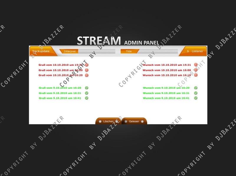 Einmal die Admin Seite, die die Moderatoren/Deejays oder Generell Admins einsehen können, wo Sie die Gruß und Wunschbox auslesen können und Tracklist schreiben können, auch da, gibts eine Listener Anzeige.