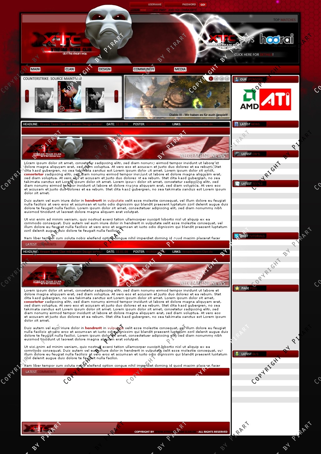 Folgendes Clan Layout wird von mir verkauft. Sollte ursprünglich einmal an Webspell angepasst werden, sollte also kein großer Aufwand sein. Es wurde noch nicht gesliced. Der Preis steht im Verhältniss zum Arbeitsaufwand, der von mir geleistet wurde.