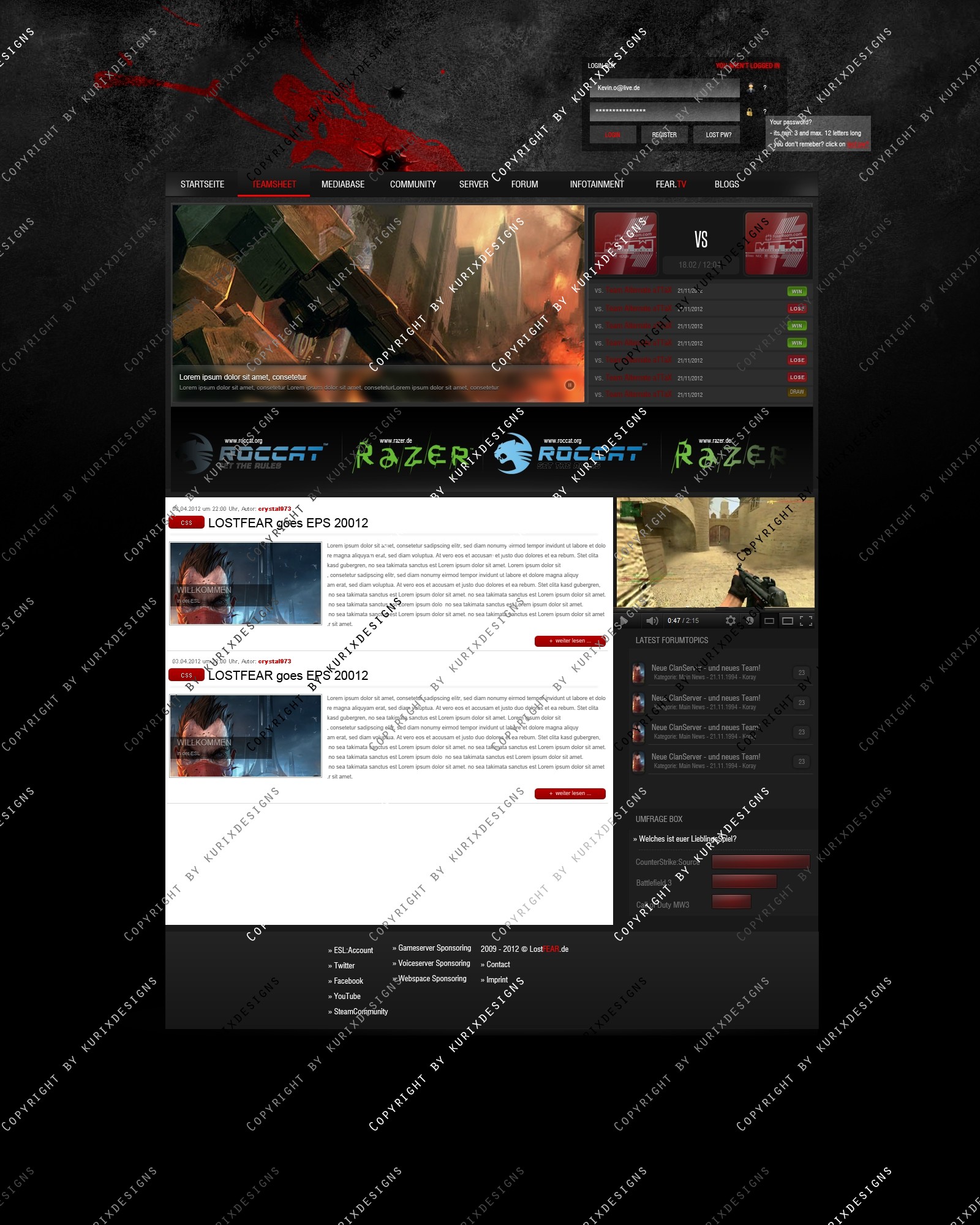 Dies ist ein eSports Design erstellt in Kooperation mit "Lost Fear" und soll für jeden Gaming Clan eine gute Webpräsenz bieten. Sowohl für neue Clans aber auch gestandene Clans ein gutes aber auch preiswertes Design...