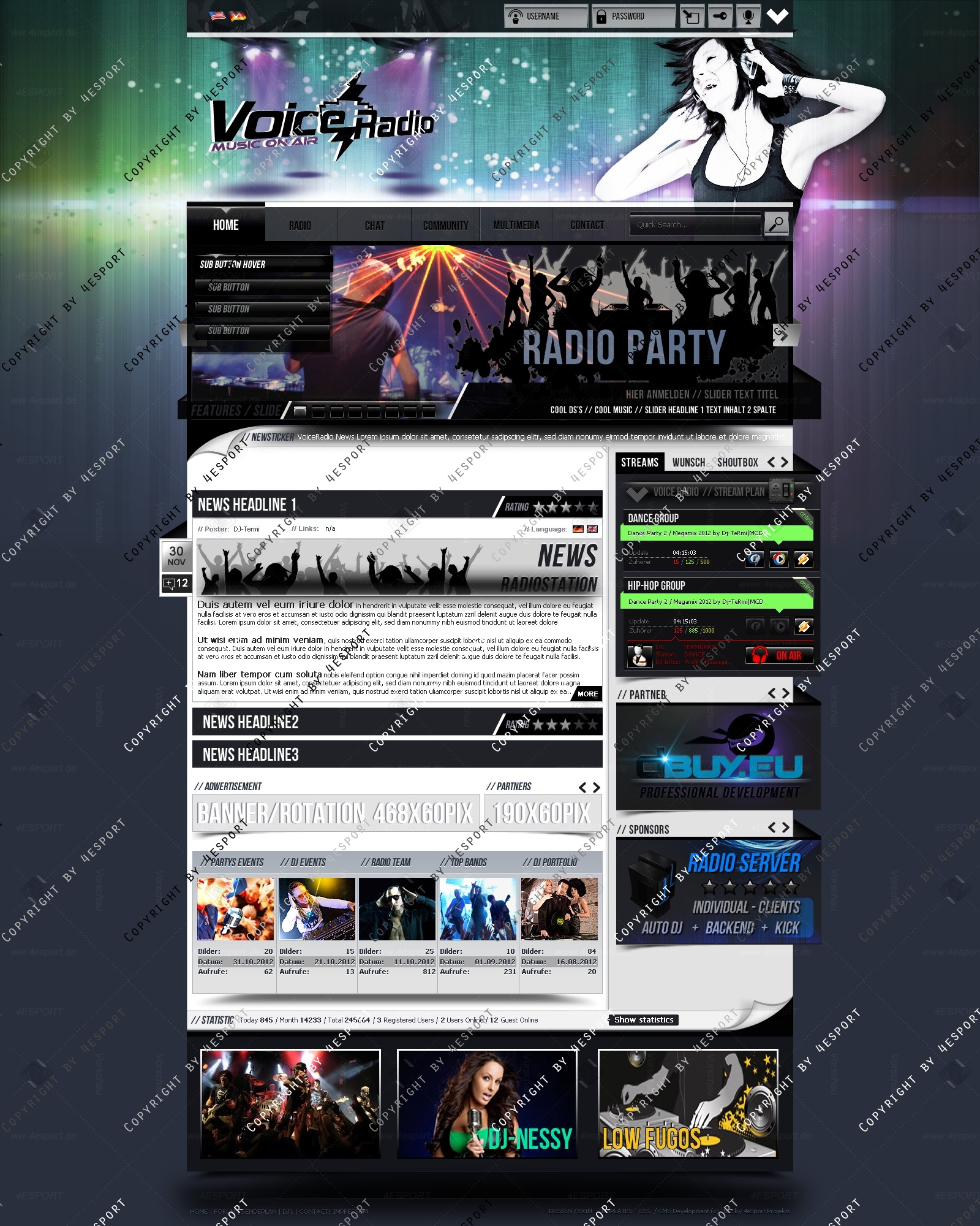 - Grafik Vorlagen je eine, in (PSD) für News Banner / DJ Teams (1x kein –1x großer Banner) 5x-Link-AS Banner.