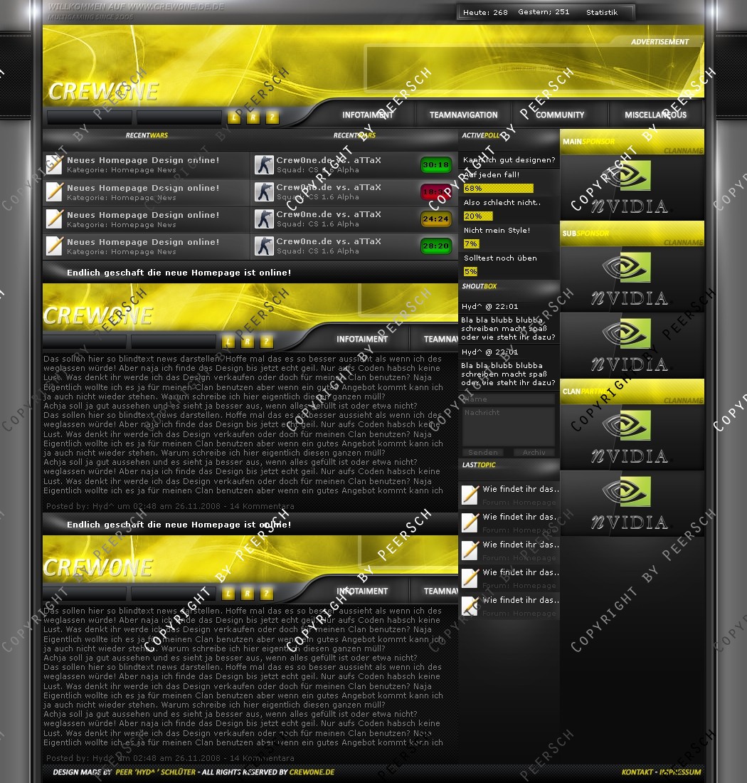 Was Sie hier kaufen ist lediglich die PSD Datei, gerne kann ich es Ihnen gegen einen Aufpreis von 13€ an ein CMS Anpassen, zur Auswahl stehen hierbei: webSPELL, Clansphere, Teklab, Devilz und andere CMS auf Anfrage ohne Aufpreis.