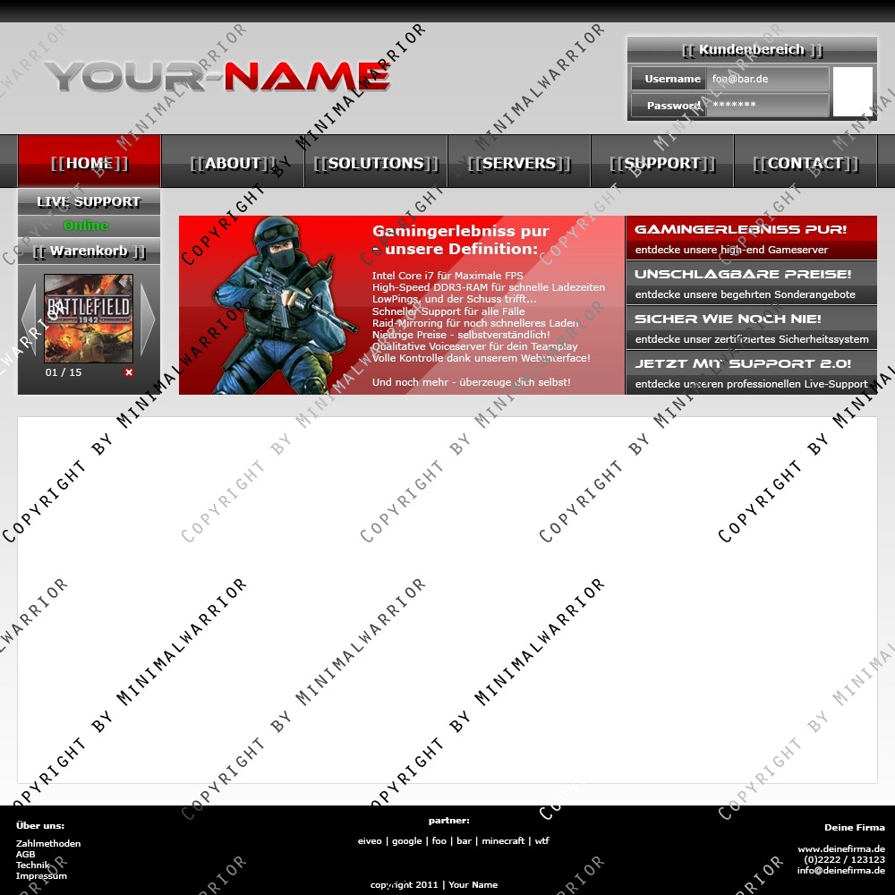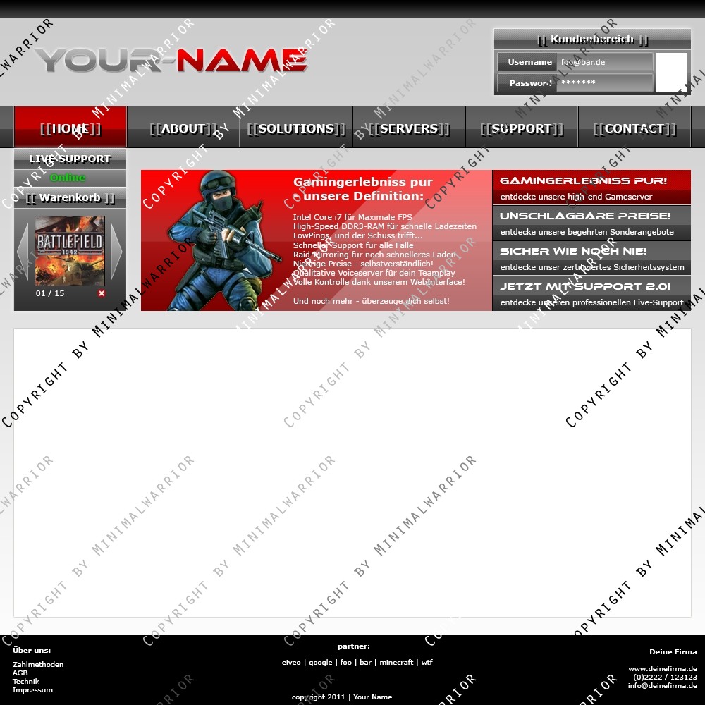 Sei der Erste und kaufe dir das Template Exklusiv um sicher zu gehen, das einzig und allein dein Hosting dieses Top-Design benutzt. Denn anhand des Designs kann man schon die Qualität des Hostings erkennen.