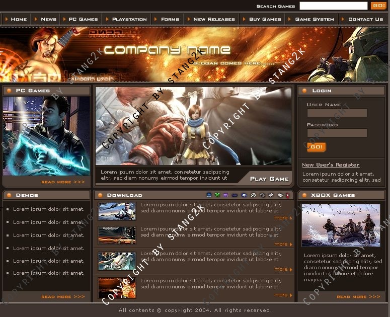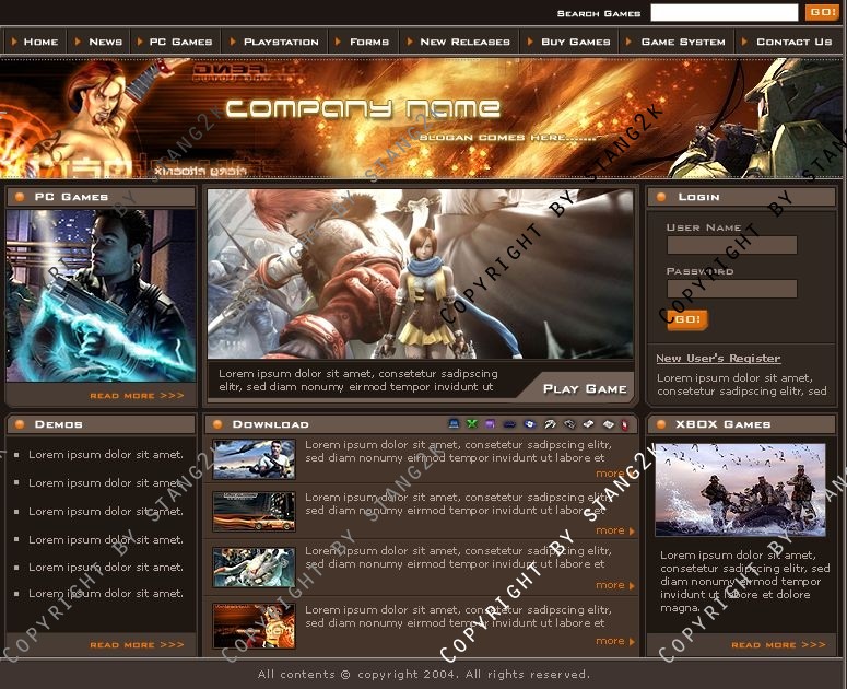 Dieses Design ist optimal für Gamercommunitys oder Clans. Das Design ist in braun und kann danke der mitgelieferten PSD und der Schriftarten nach eigenen Wünschen verändert werden.