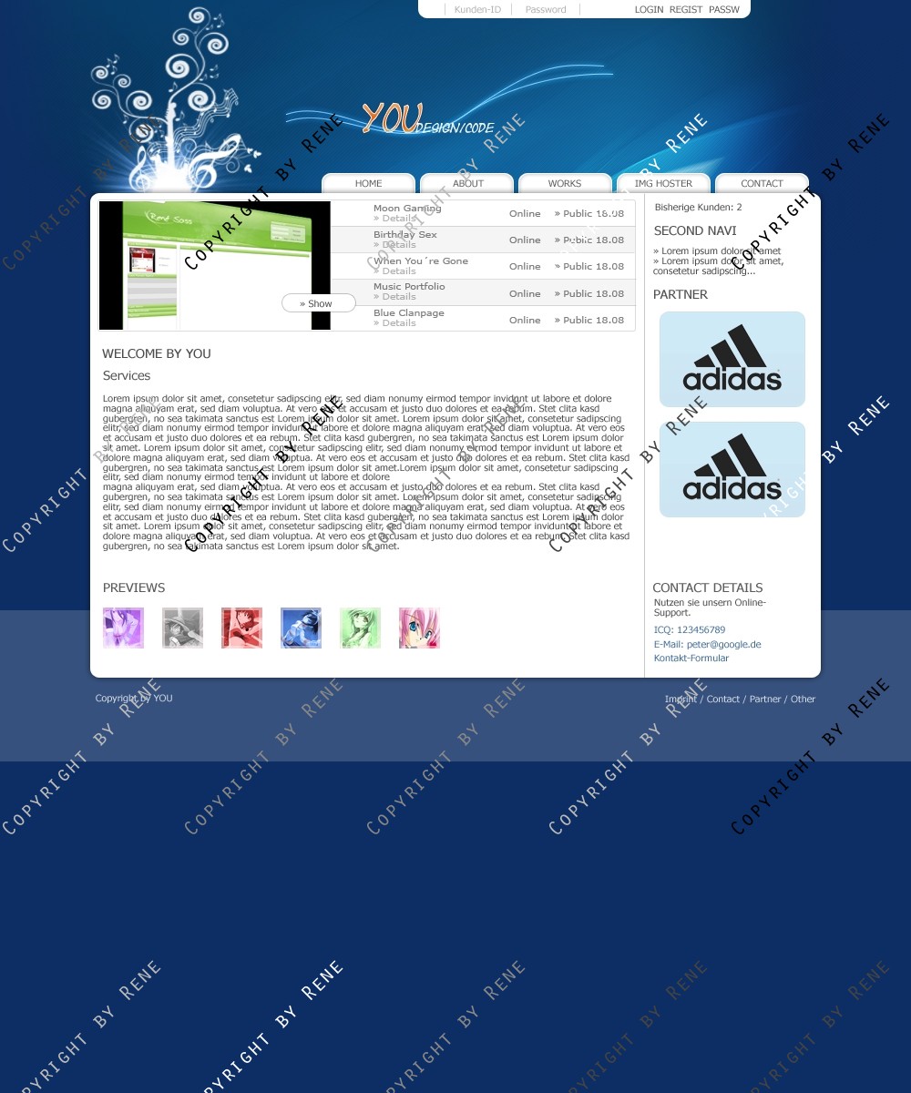 Ein Blaues Template. Es kann für Code oder Design Arbeiten genutzt werden. In dem Design ist ein Work Slider drinne.