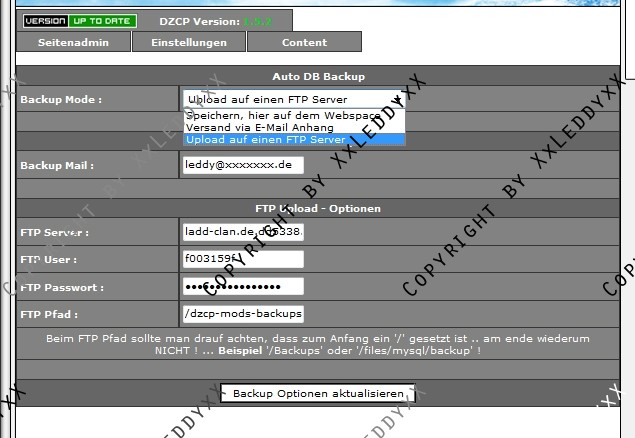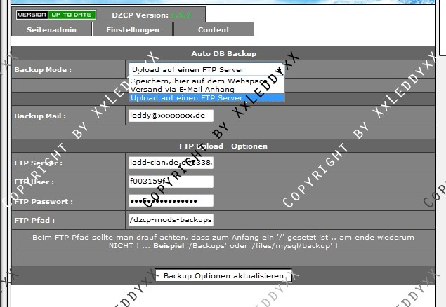 - Upload via FTP (die Backups werden auf einen externen FTP Server hochgeladen)
