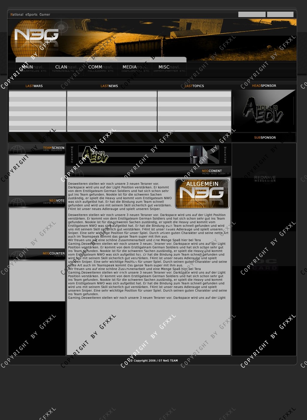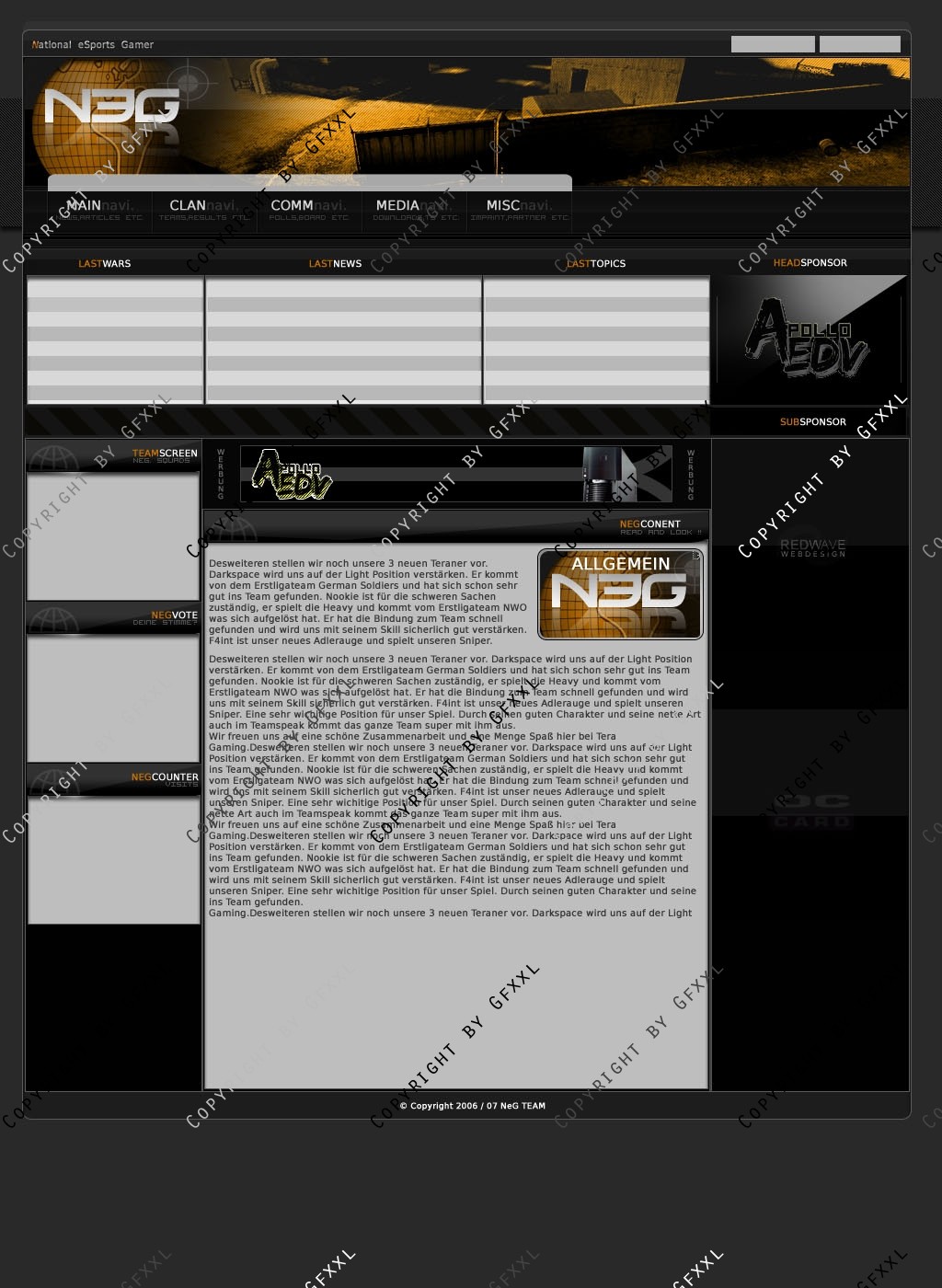 Ich stelle hiermit mein "altes" Clandesign zum Verkauf ein, er war ursprünglich für Natinal-eSports Gamer gedacht, aber aus dem Auftrag is nix geworden... deshalb hier und jetzt zuhaben!