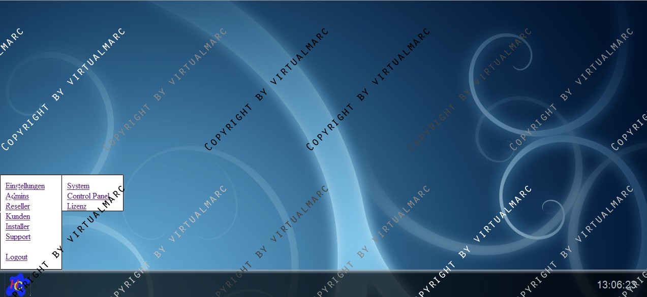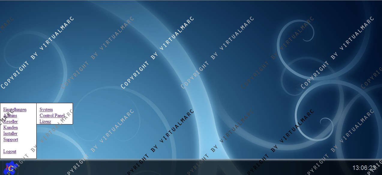 Unten befindet sich eine Menüleiste mit einer Uhr und einem PullUp Menü.