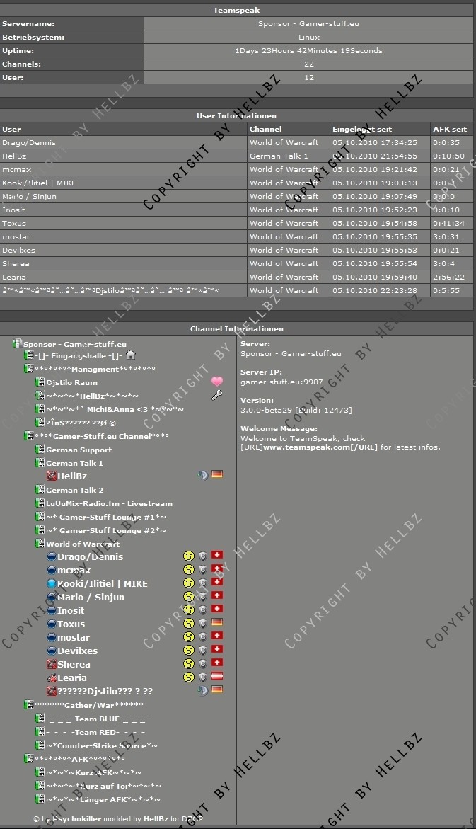 Ich biete den MOD nicht Hauptsächlich unter meinem Namen an, da der Viewer also das Grundscript von Psychokiller ist, der auch das einzige im mom geupdatede Teamspeak Webinterface codet.