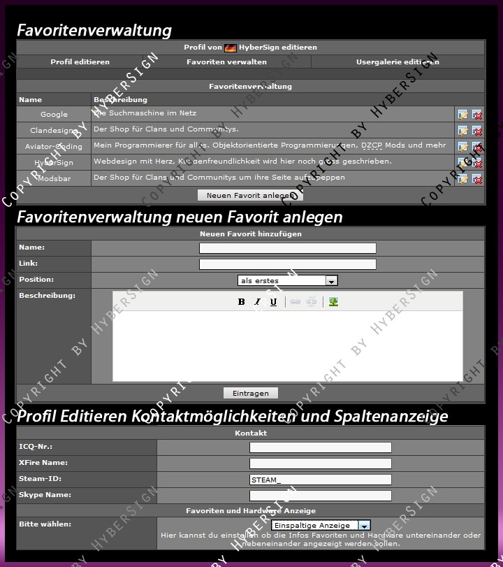 - Anzeige von User Web Favoriten die sich bequem beim Profil editieren anlegen lassen.