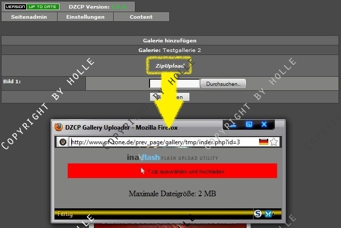 Darum habe ich diesen kleinen aber feinen Mod für das DZCP geschrieben, welcher euch erlaubt, eine zip-Datei mit Bilddateien auszuwählen & hochzuladen.