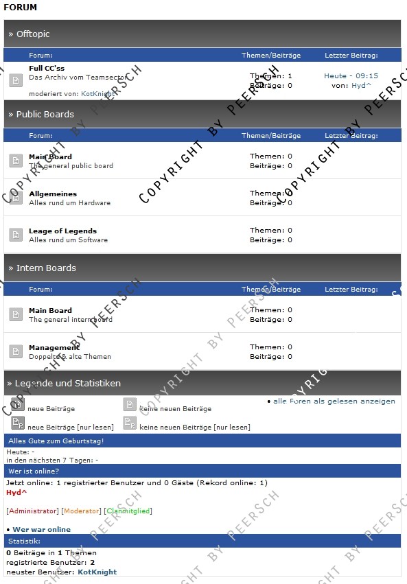 Eine vollkommen andere Forumansicht. Sie ist an das Forenlayout von wbb angelehnt, jedoch etwas völlig einzigartiges. Es gibt 2 Versionen, eine etwas hellere, und eine etwas dunklere.