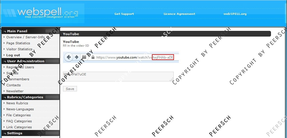 Das Video kann im gewohnten Admincenter von webSPELL geändert bzw. festgelegt werden. Eine kinderleichte Bedienung, auch sehr unerfahrene leute werden mithilfe der beigelegten Installationsanleitung mühelos dieses Addon einbinden können.