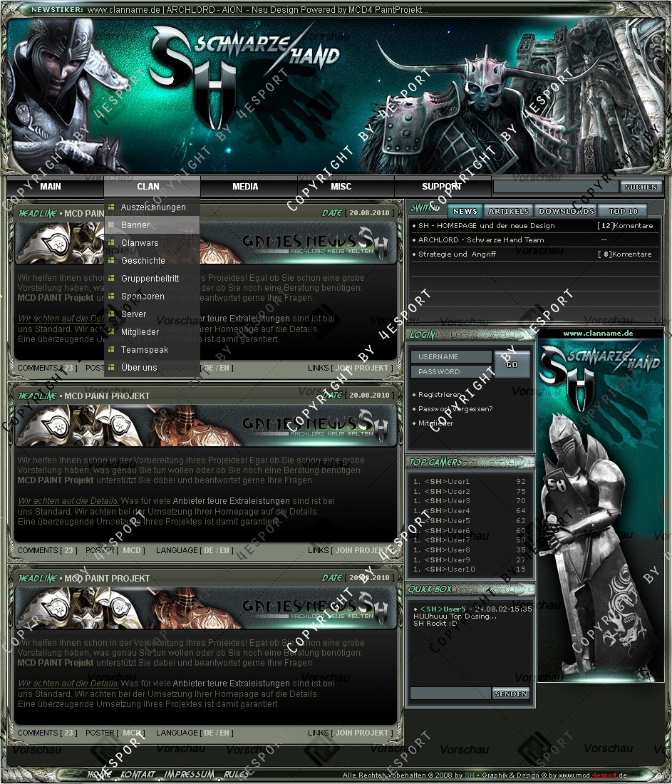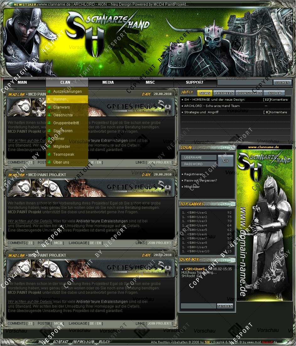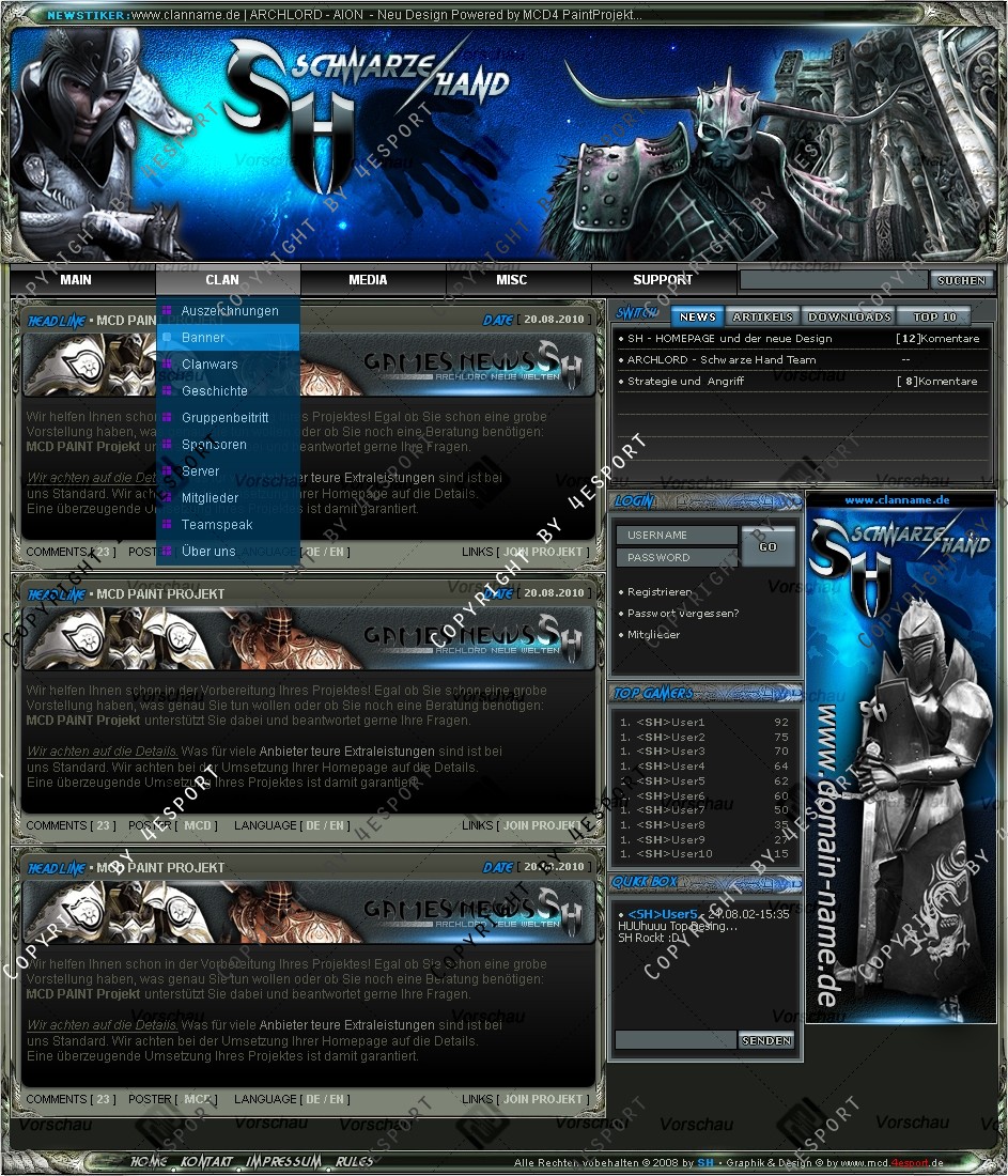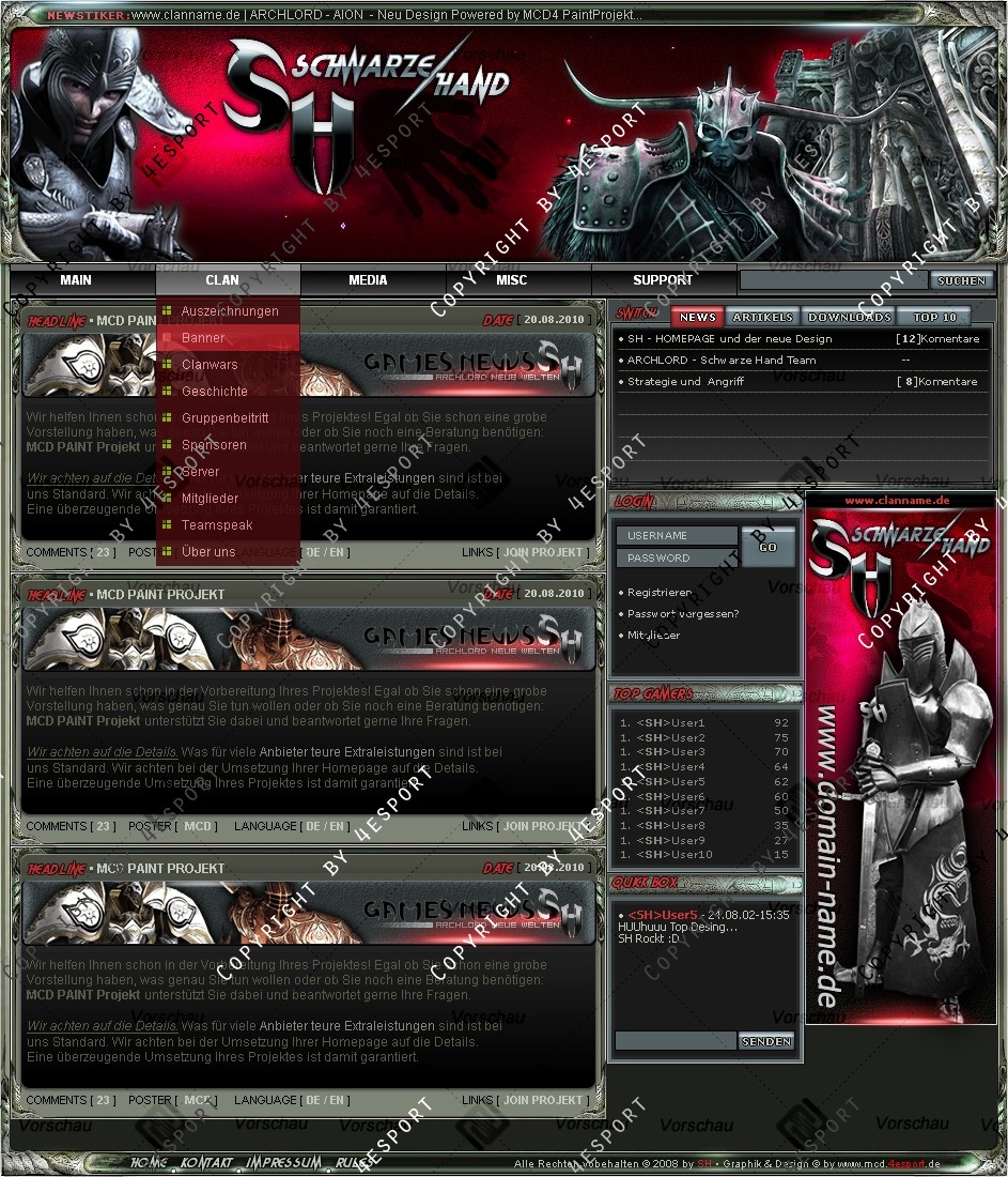 Wir können auch Ihre EXKLUSIVE Farbanpassung anfertigen bzw.: Neue LOGO CLAN NAME, Rahmen, Boxen Hintergründe, Titel-Fonts, Verlauf-Farben, Boxen Anordnung, usw.... das alles ist nur in EXKLUSIVE PREIS enthalten.