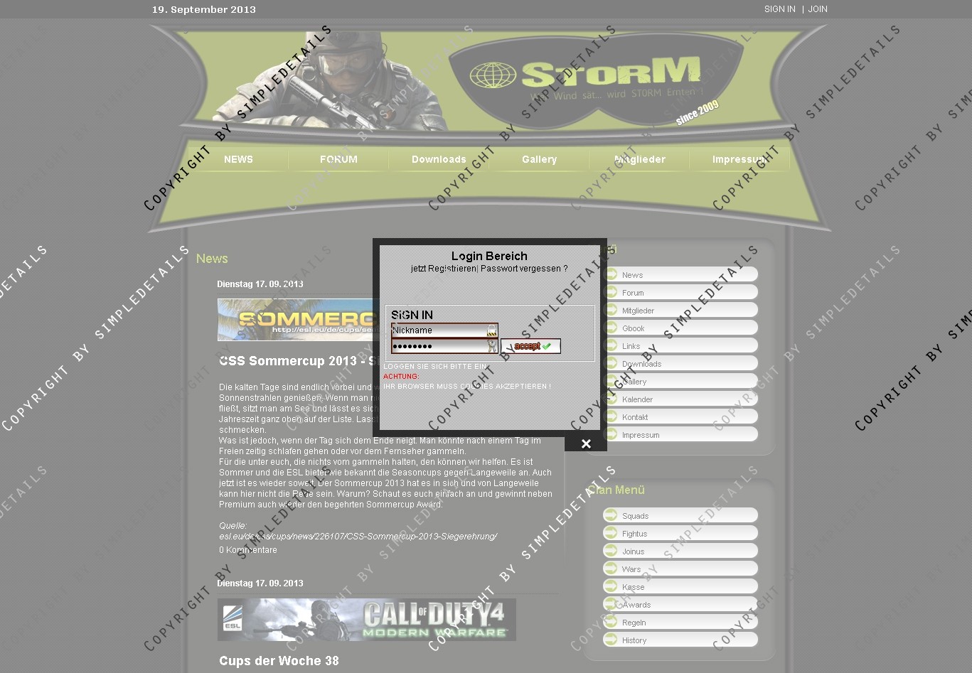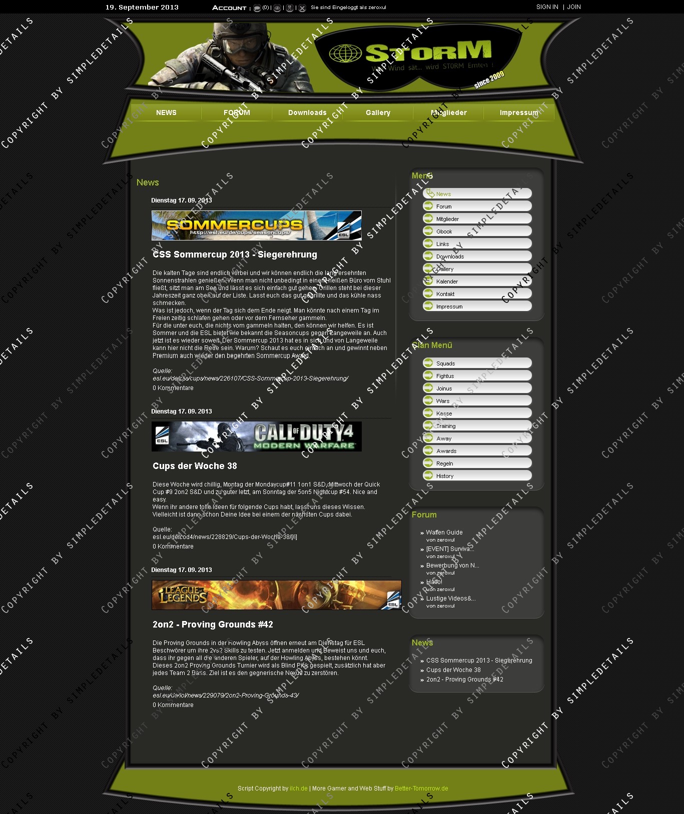 Im Header ist ein Clan-Logo eingebunden, das auch in der .PSD Datei vorhanden ist, und frei angepasst werden kann.