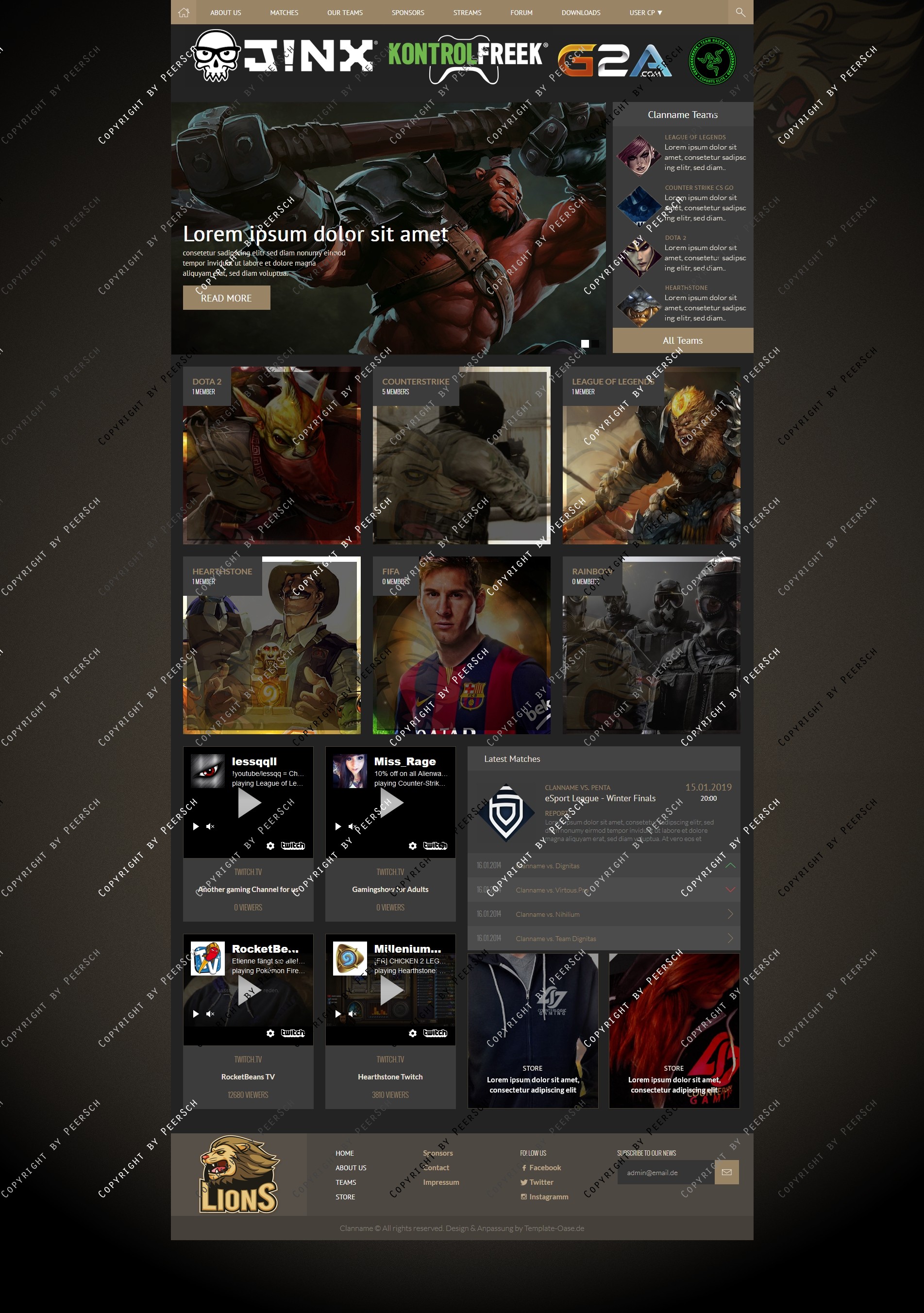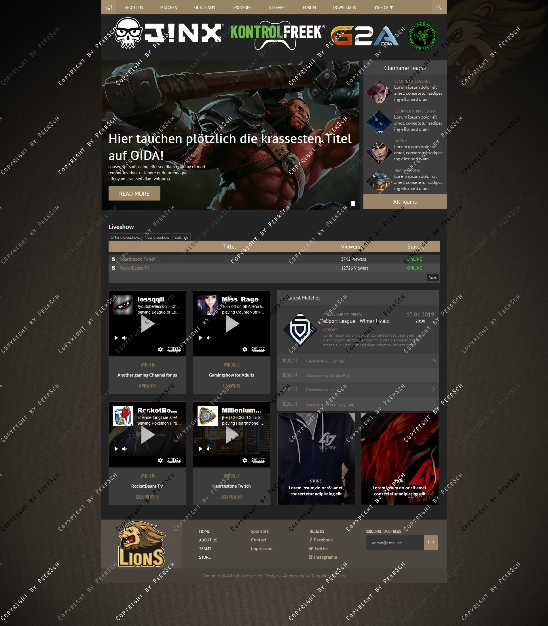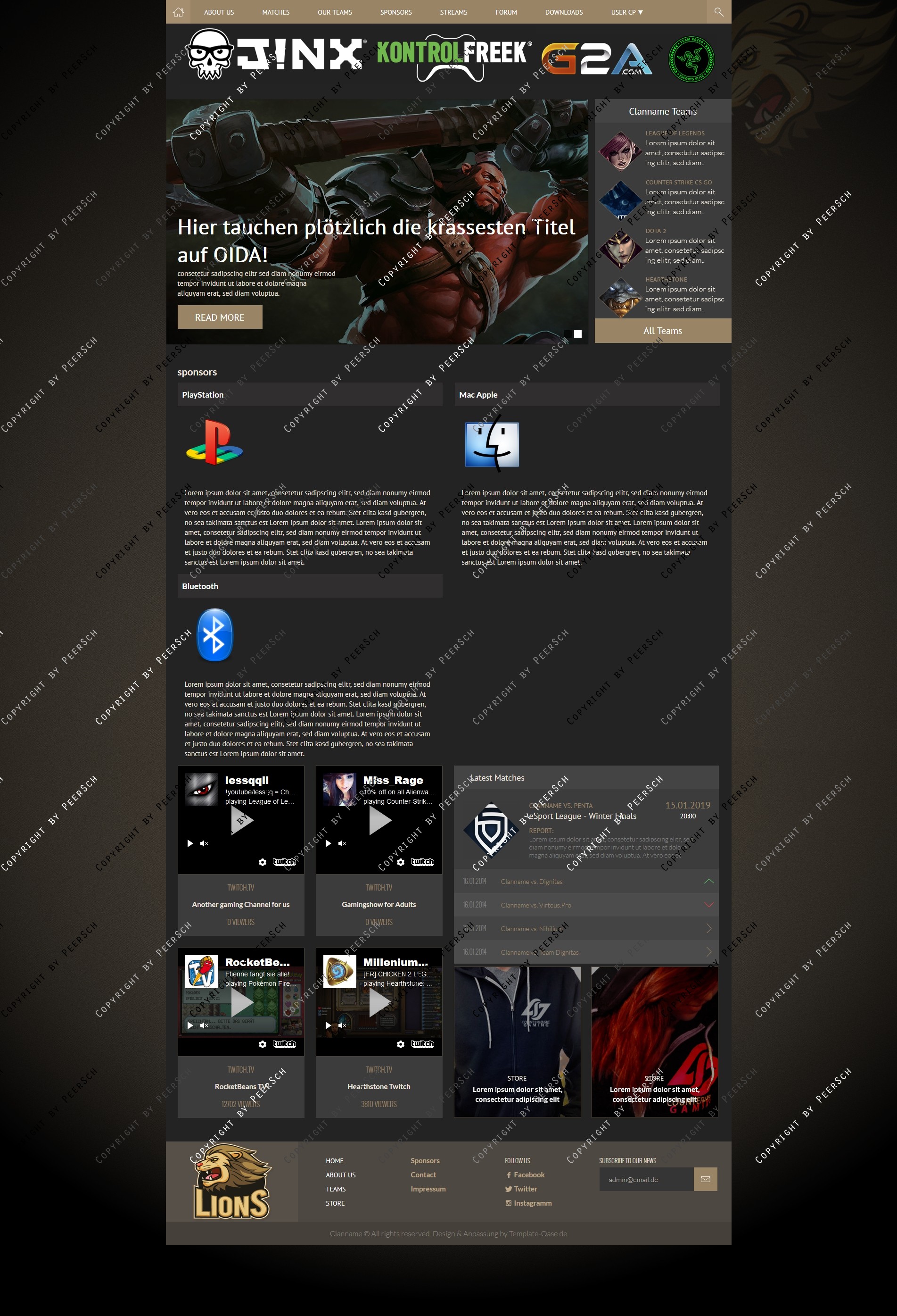 Im Preis mit inbegriffen sind außerdem die angepassten Unterseiten: Sponsoren, Squads, Squaddetail, News, Newscomments, Profil und Streams!
