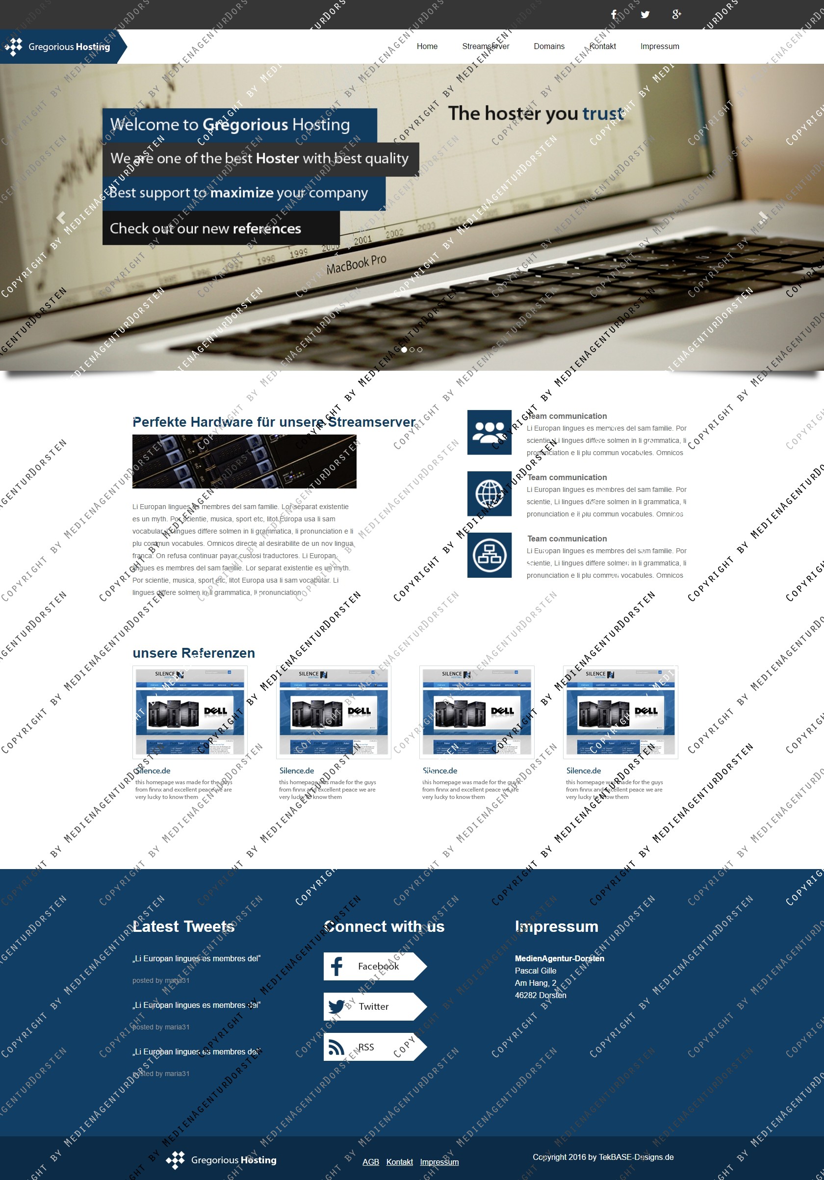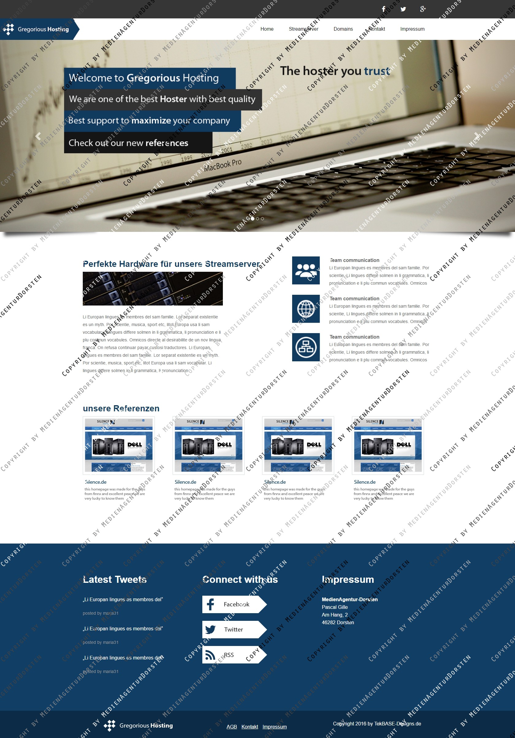 Hierbei handelt es sich um die Version 1.0 von unseren Gregorious Hosting Design. Das Design ist mittels Bootstrap Programmiert und ist Mobilfähig.