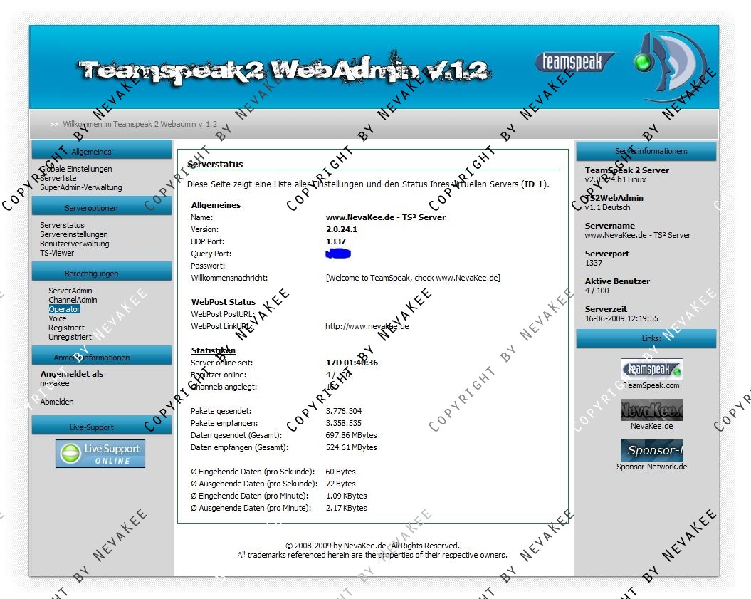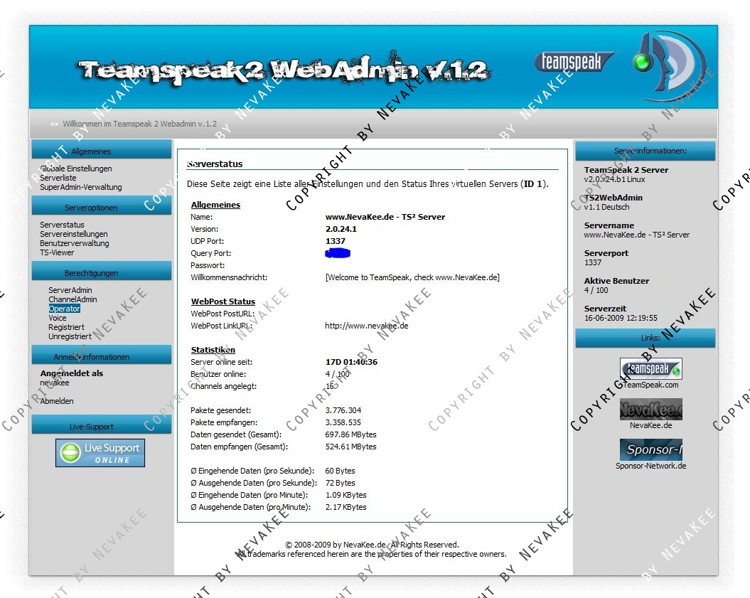 Kostenloses Webinterface für euren Teamspeak Server.